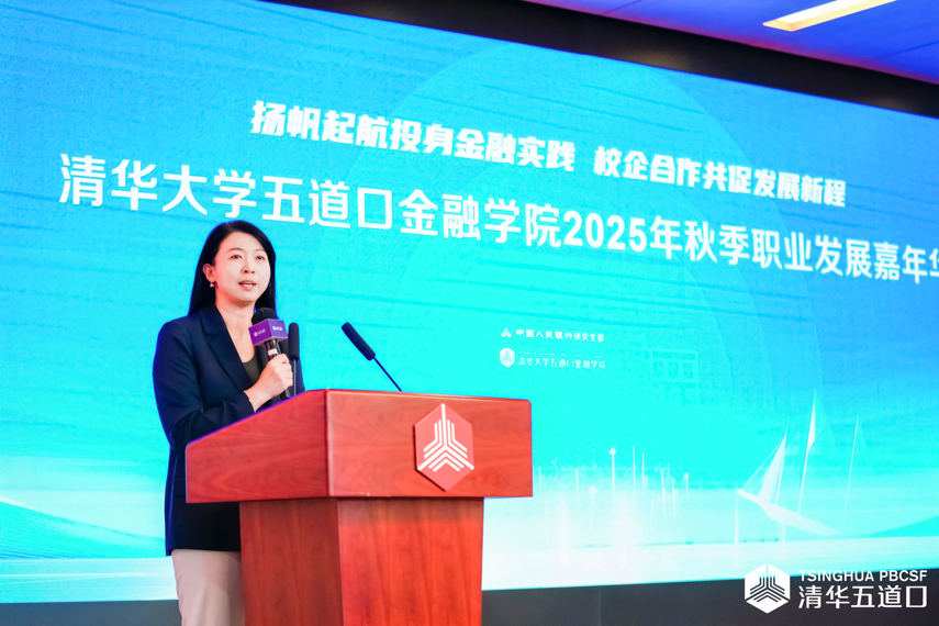 Recently, the 2025 Fall Career Development Carnival was successfully held at the Tsinghua University PBC School of Finance (Tsinghua PBCSF). Under the theme “Embarking on Financial Practice, Advancing Growth through University–Industry Collaboration,” the event invited representatives from major central financial enterprises, leading financial institutions, key real-economy and technology companies, and international organizations. The Carnival aimed to build a high-quality, comprehensive career development and networking platform for all PBCSF master’s and doctoral students. Professor Jie Jiao, Dean of Tsinghua PBCSF, delivered the opening remarks. Professor Xiaoyan Zhang, Associate Dean of Tsinghua PBCSF, Associate Professor Yue Liu, Director for the Student Affairs Office, and more than 150 master’s and doctoral students attended the event.