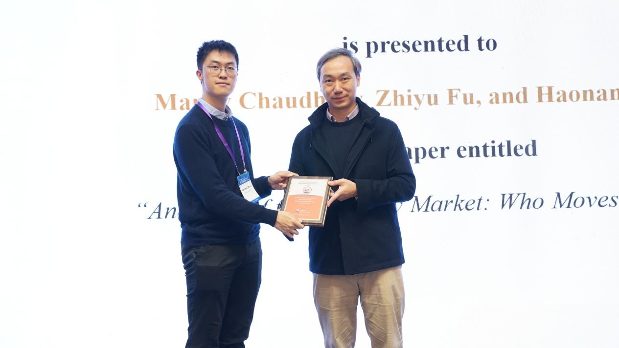 Photo: Professor Chen Lin presenting the Arthur Warga Award for Best Paper in Fixed Income