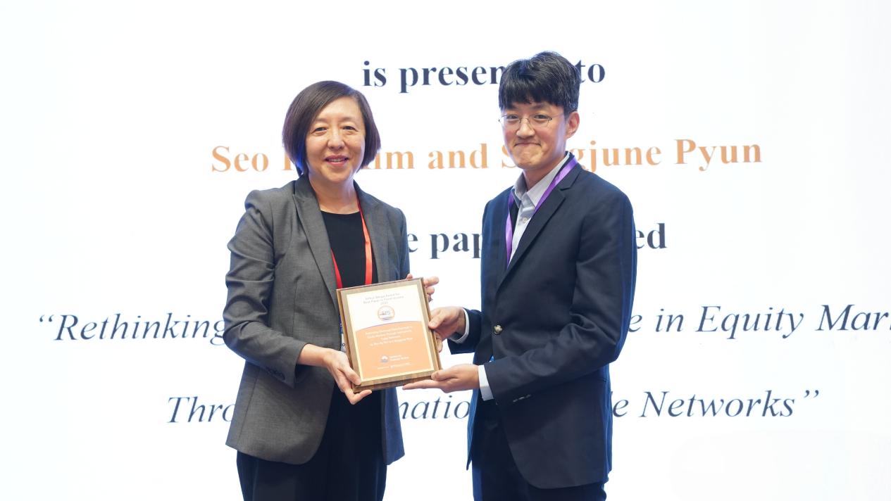 The Best Paper in Asset Pricing award was awarded to "Rethinking Exchange Rate Exposure in Equity Markets Through International Trade Networks" by Seo Ha Kim and Sungjune Pyun. The paper demonstrates that trade networks critically moderate how currency fluctuations affect firm values, with effects amplifying through export and import linkages.